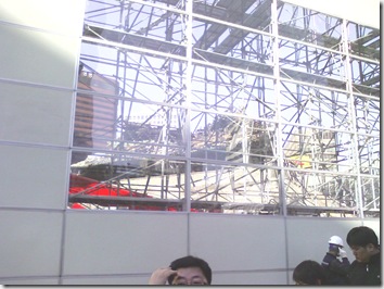 하얀색 물체는 패널이었다. 관광객들이 숭례문을 못보게 가려놓은 것이다. 그옆에 전지 같은것이 다닥다닥 붙어있다.
